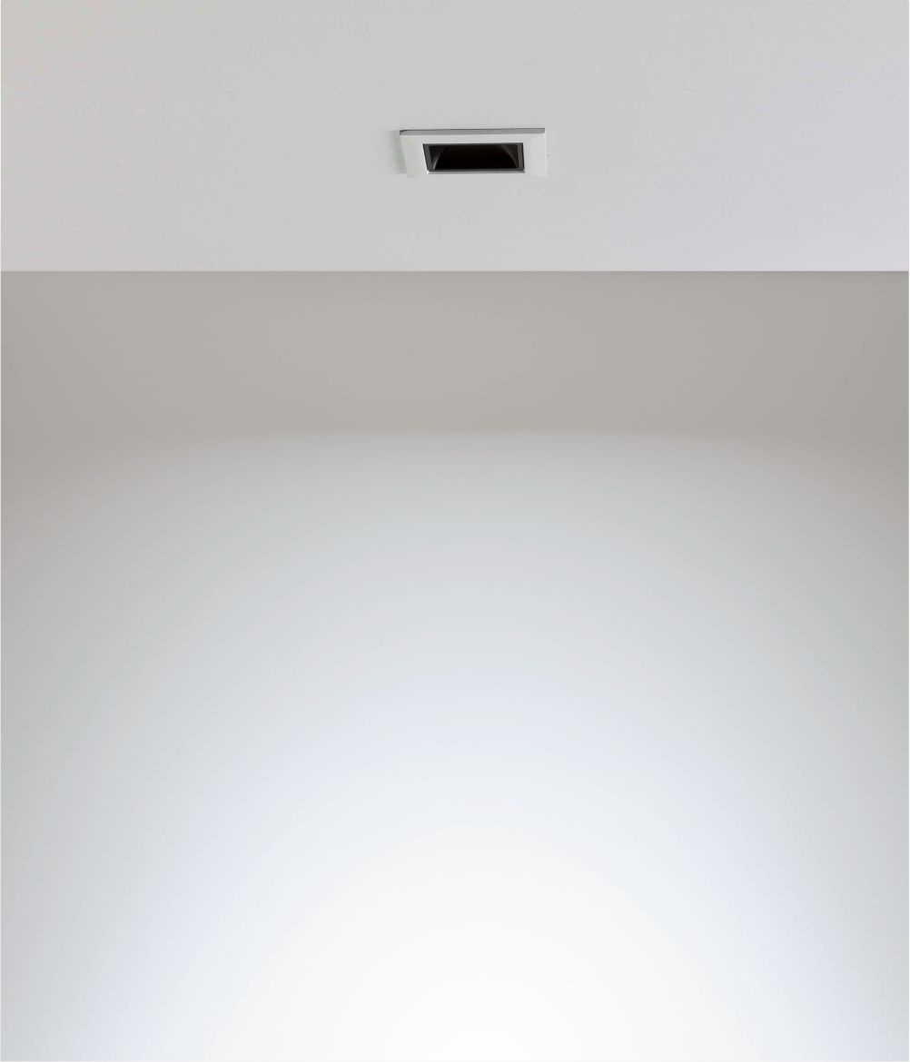Empotrable de 1 luz con bafle antideslumbrante y cuerpo de inyección de aluminio. Iluminación de efecto o general. Efecto lumínico circular.