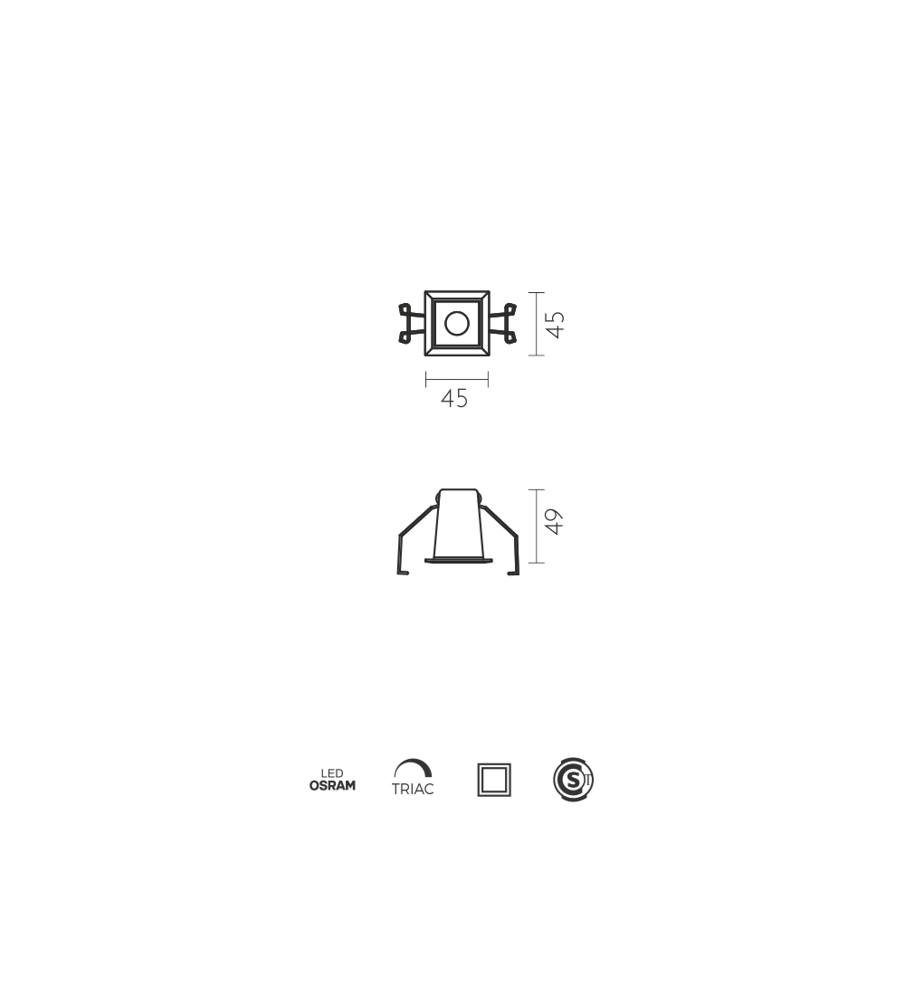 | 06.AA14.0011.__ | 2W | 120lm | 3000K | 45° | 90 | 45x45x49mm | TRIAC |