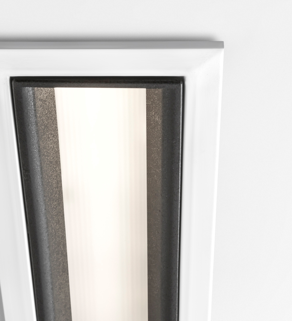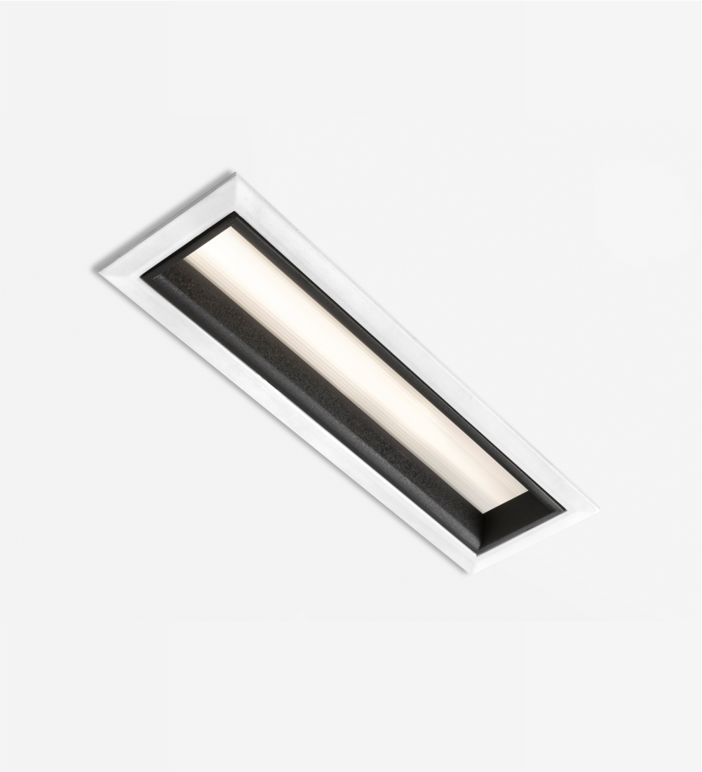 Empotrable lineal de 1 y 2 luces de iluminación general con fuente de luz difusa y bafle antideslumbrante. Cuerpo de inyeción de aluminio.