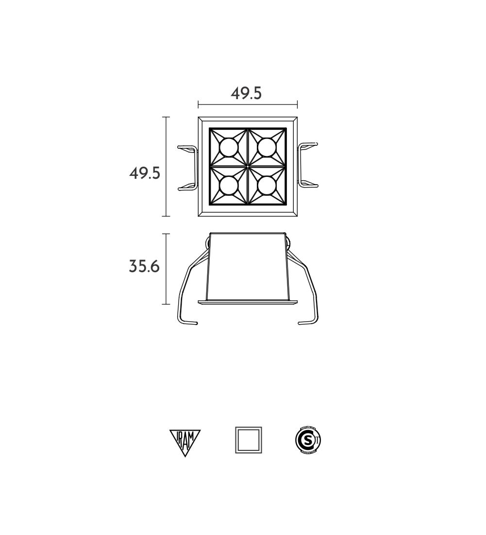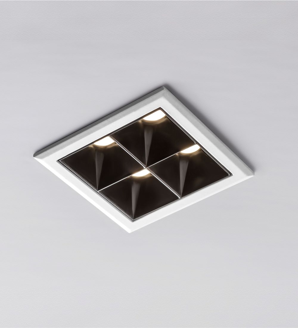 Empotrable de 4 luces con bafle antideslumbrante miniatura y cuerpo de inyección de aluminio. Iluminación general.