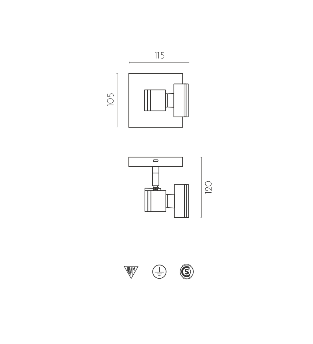 Aplique / Plafón de 1 luz orientable, con base cuadrada. Iluminación general.