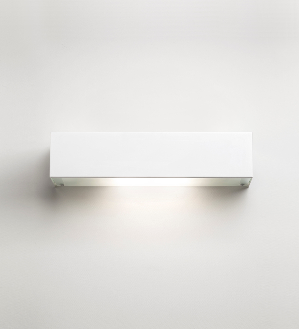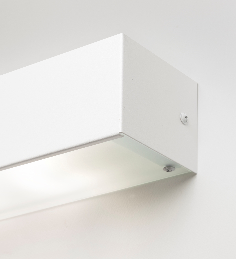 Aplique bidireccional para iluminación de efecto, con tulipa de vidrio y frente metálico.
